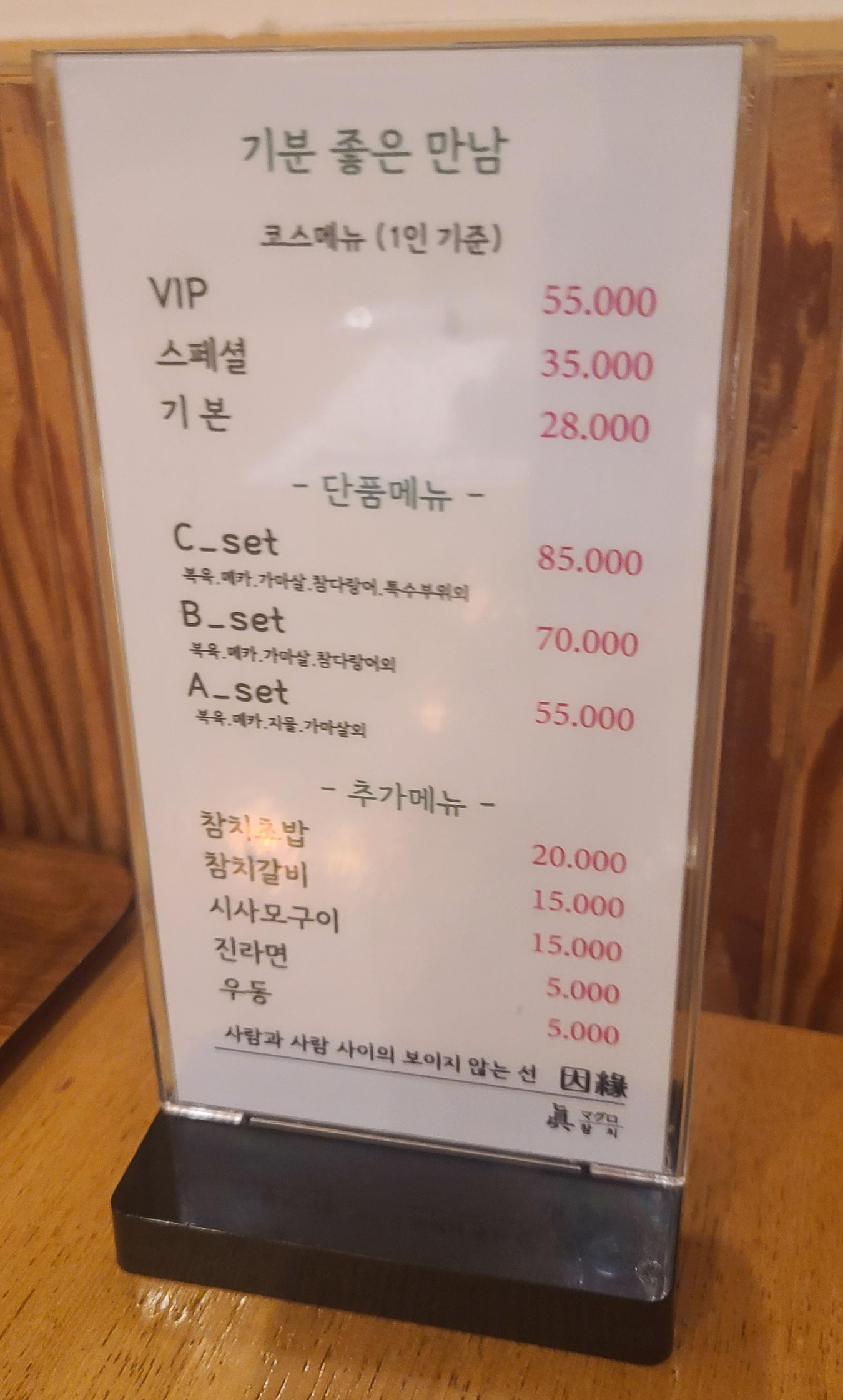 상대원 맛집 "진참치"의 "메뉴판"입니다. "코스메뉴", "단품메뉴"로 참치회 주문이 가능하며 "추가메뉴"를 통해 다양한 식사 주문이 가능하네요. 참치횟집이라 그런지 "주류"엔 "사케"도 마련되어 있습니다. 이번엔 "단품메뉴" 중 "B_set"를 주문하였네요.