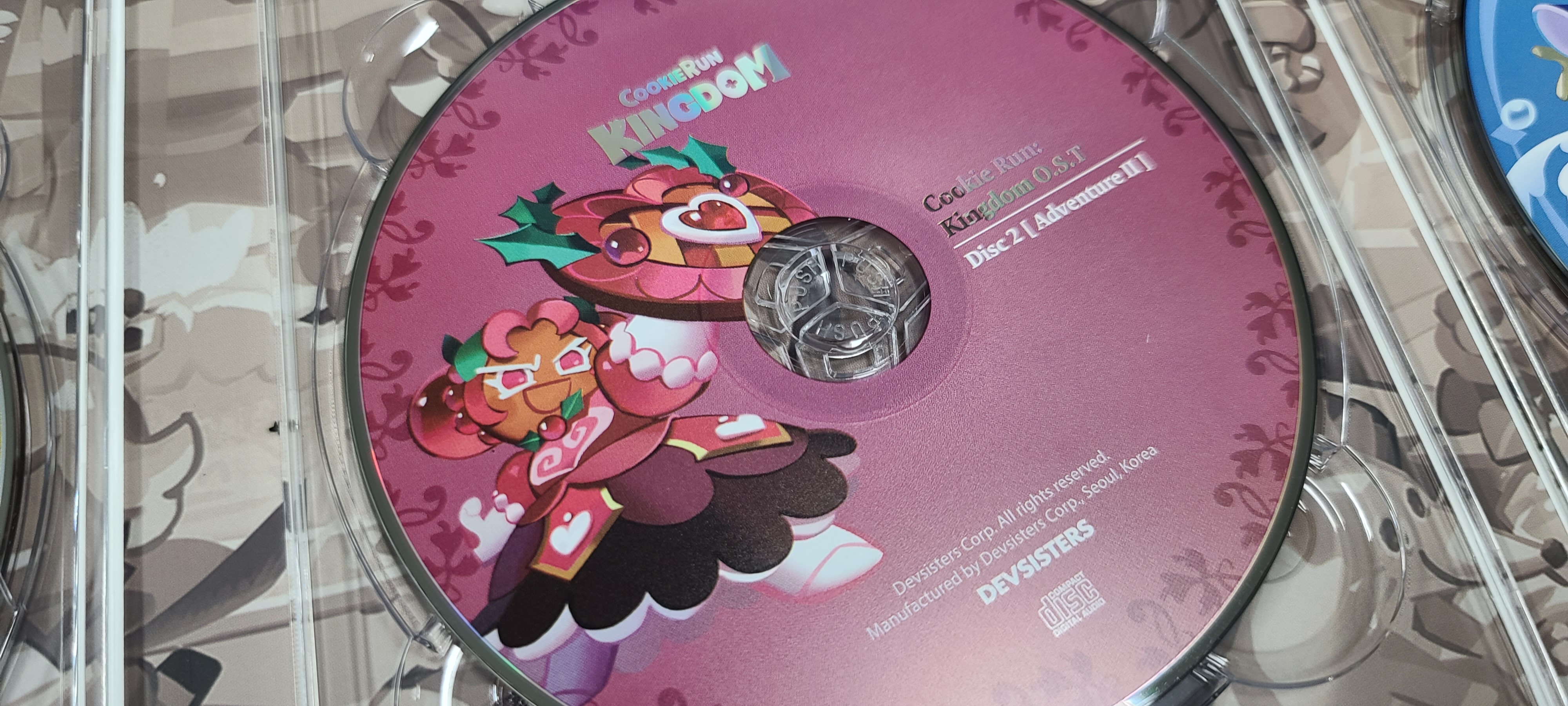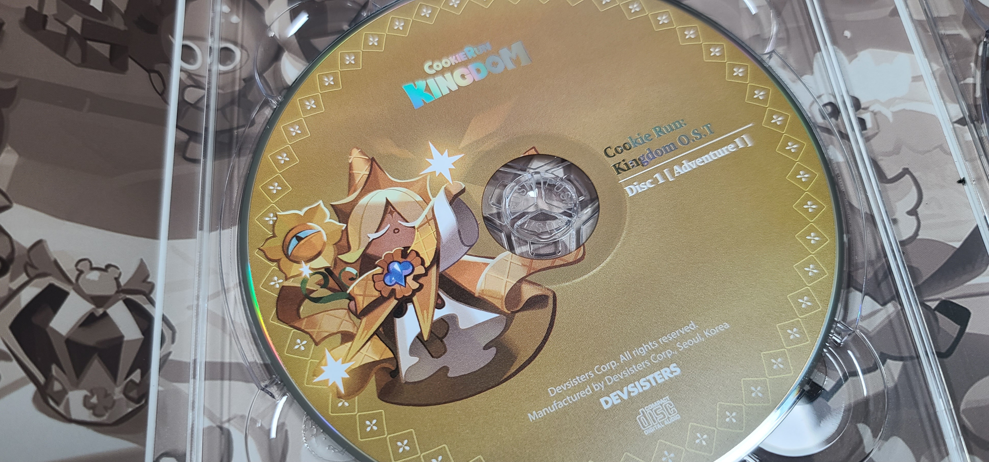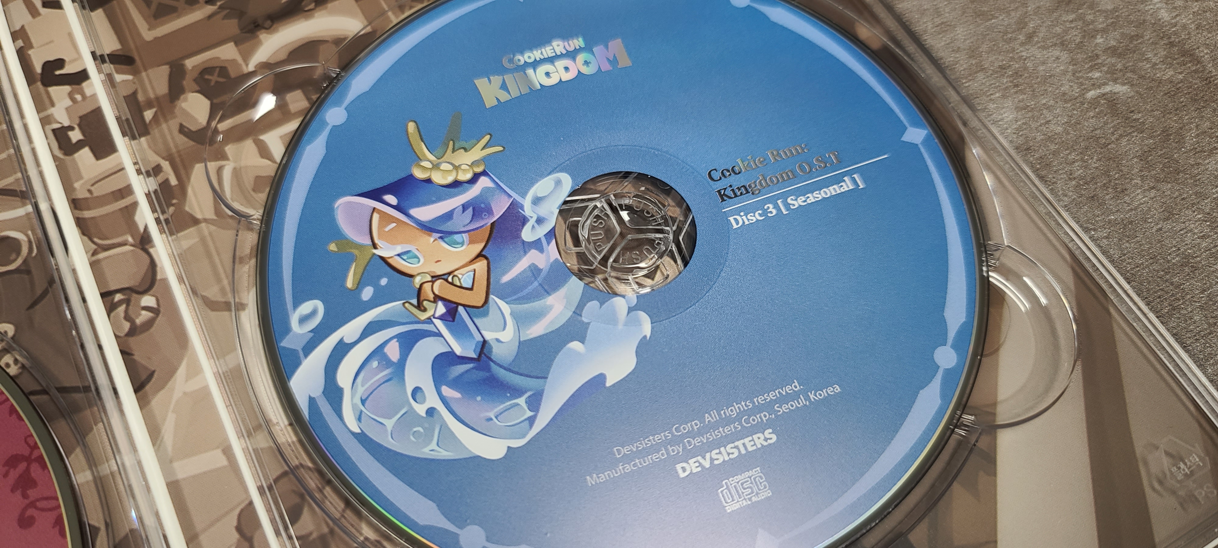 OST CD-R은 총 3장이며 "퓨어바닐라 쿠키", "홀리베리 쿠키", "바다요정 쿠키"가 새겨진 디자인이 너무 이쁘고 마음에 드네요. 쿠폰 또한 금박의 깔끔하고 아름다운 디자인이 소장 가치가 생길 정도로 아주 마음에 듭니다.